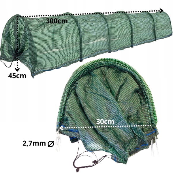 • Tunel  posiada 6 zaokrąglonych prętów trzymających siatkę.